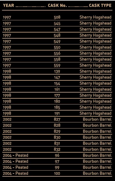 A vatting of 27 casks ranging from 1997 to 2004, here is a bit more details on the casks: